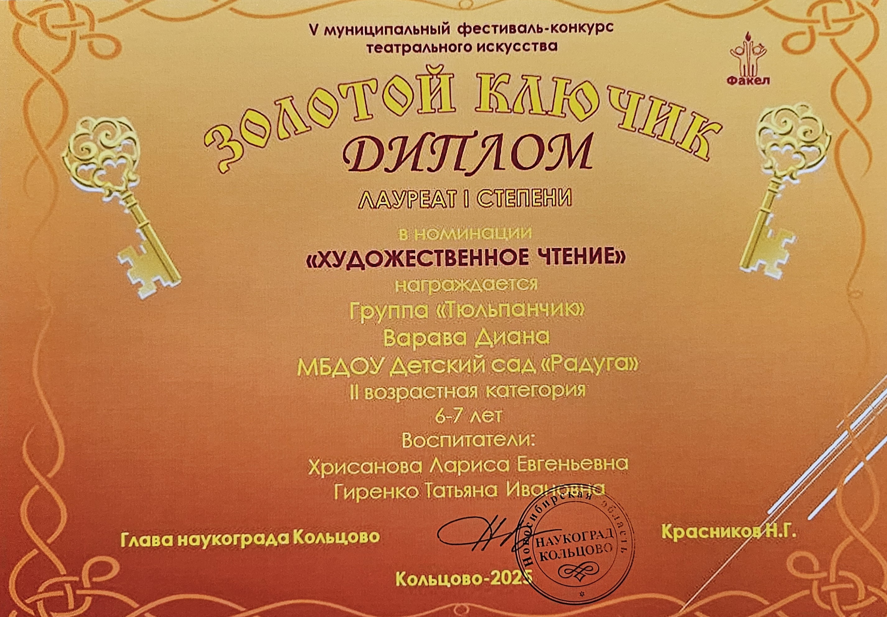 Диплом 1 степени Перфильев Гера
